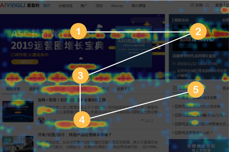 可以看出,关注点路径并不是通过数据智能绘制的,而是需要结合用户的关注焦点和视觉走向手动绘制,红色区域代表用户最为关注的痛点,数字和线条代表用户关注焦点的转移路径。