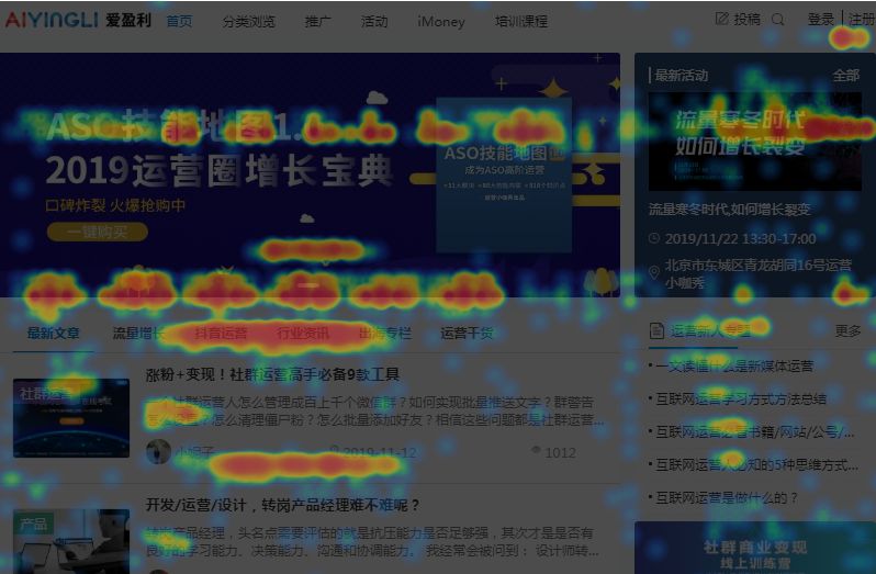 热力图是以点击数作为统计展示,颜色从冷色到暖色代表了用户的点击频次。