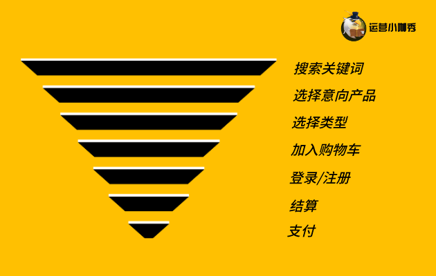 上图是未注册/未登录用户搜索商品,形成购物转化的过程。随着流程的深入,用户在每个阶段都会产生流失。