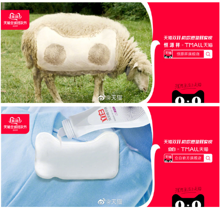 天猫今年对“猫头”把玩不止,这不,又Q了18家品牌盘出第二波“猫头海报”,冠之以#大型猫头许愿现场#的美名。这波猫头海报不及第一波精美,但创意尺度更大。不少品牌干脆用自家产品幻化成猫头形状,比如倒出洗衣液的立白、被剃毛的恒源祥和“花”+“贝壳”的花呗,叫人惊喜连连。