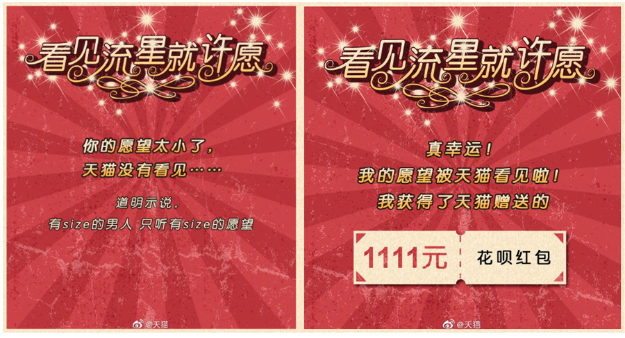 一句话总结这句多重含义的tagline,便是:在正值十一周年的双十一期间,希望每一个人的愿望都能一一实现。
