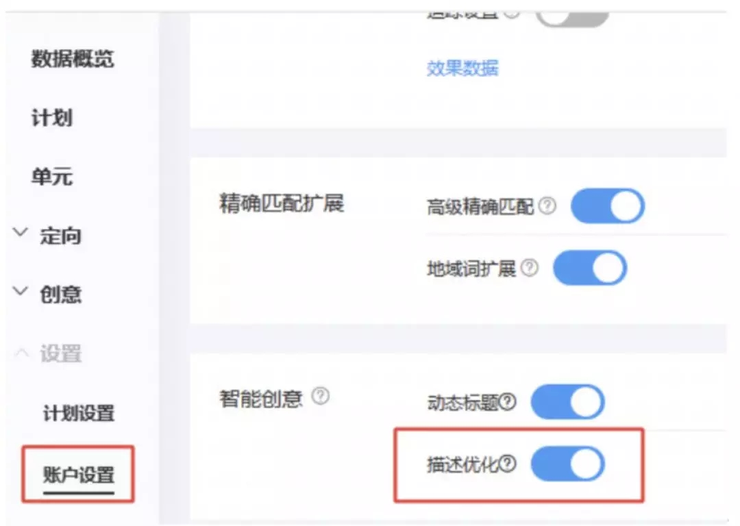 注意!账户层级『动态描述』开关开启后,才能控制计划层级开关!