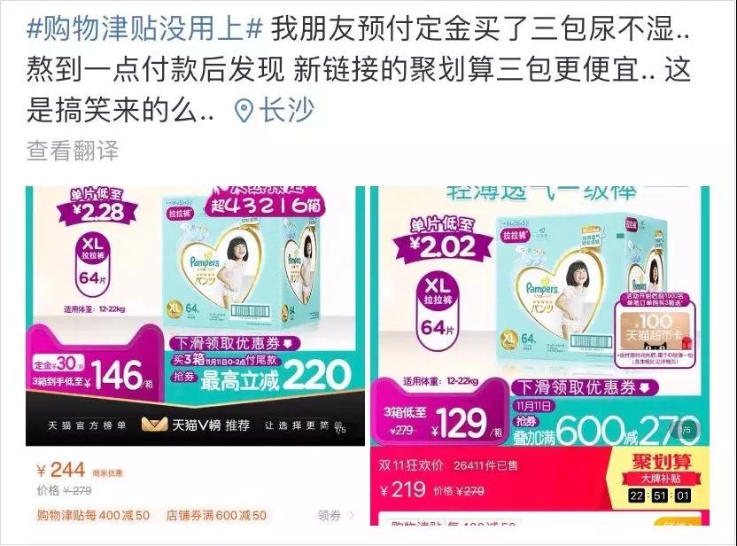 有些用户就发现,自己付了定金购买的商品居然没有比直接用聚划算买便宜。
