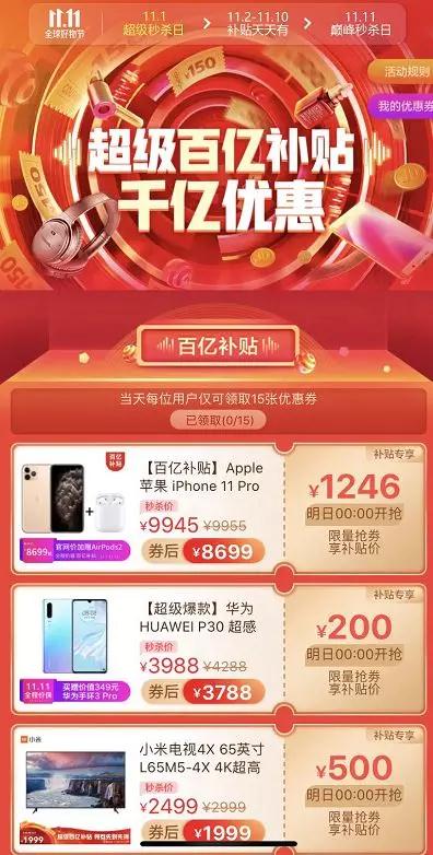 聚划算百亿补贴 今年双 11,iPhone 11、华为 Mate 30 Pro等热门手机,有超过一半的订单都来自下沉市场。