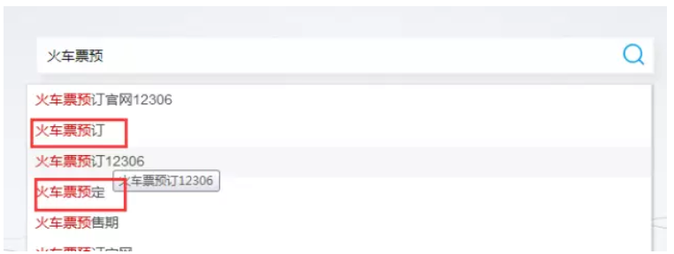 再举一个例子,比如火车票预订。但是很多人都会搜索成“火车票预定”