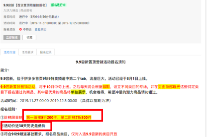 这些活动商家后台都能够报名参加,而正是在报活动时,商家会受到严格的价格控制。