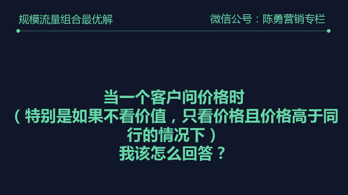 客户打电话来,问你价格多少的时候,你想想不看价值只看价格,且价格高于同行的情况下,你怎么说?