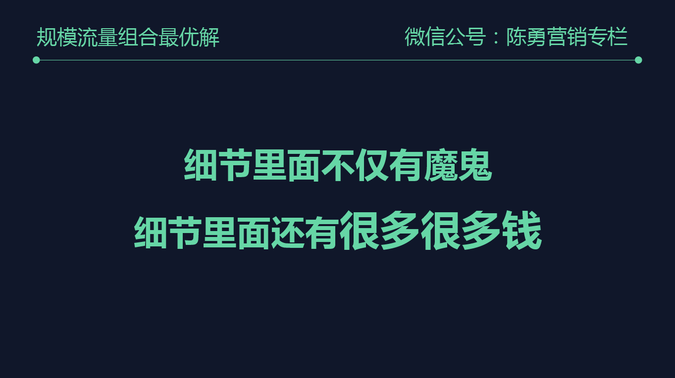 这就是为什么我经常说:“细节决定成败,细节里面不仅有魔鬼,还有很多很多钱”