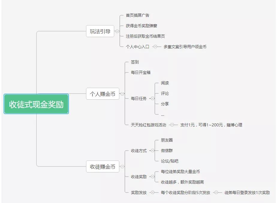 需要让用户每天或者每周去完成指定的动作,让用户获得积分。注意,这里不是核心功能,因为在可能核心功能已经包含在了会员体系了,而积分体系是增加用户使用产品其他功能的一种手段,但是也不能偏离核心功能。趣头条,七猫小说等产品的金币体系,其实就是一种用户积分体系,让用户完成产品指定的某个动作,能够获得金币,金币可直接兑换成现金。