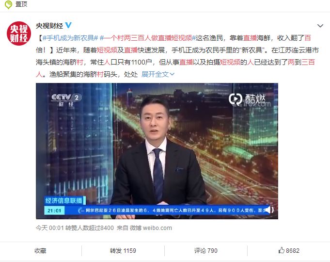 像果农、菜农、渔民之类的,本来销路就比较少,多数只能低价卖给中间商,有时我们也能经常看到“XX地香蕉滞销”之类的新闻,而直播或短视频则可以成为一种网络经济,甚至原本种果树、捕鱼更挣钱。