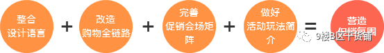 我们通过整合设计语言、改造购物全链路、完善促销会场矩阵、做好玩法简介共四块工作在本次周年庆期间营造促销氛围。