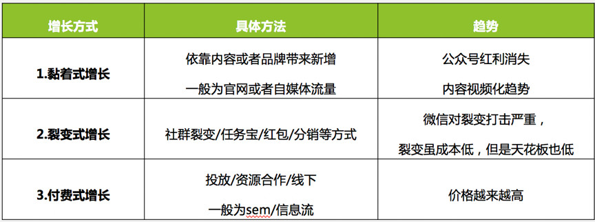 企业增长的三种核心方法就像埃里克·莱斯在《精益创业》中所说,会分为黏着式增长,裂变式增长,付费式增长。