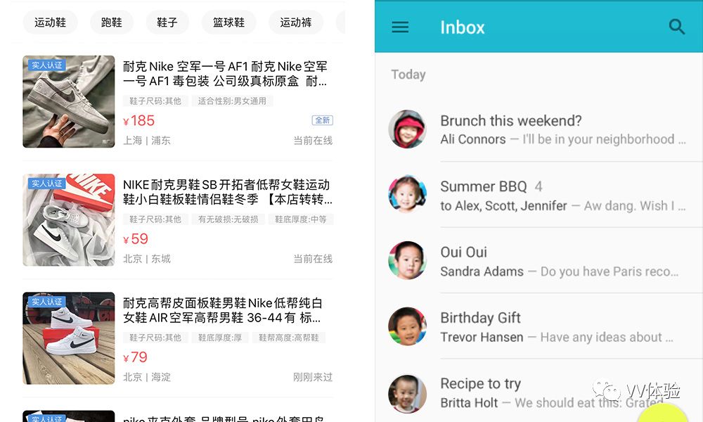 视觉重心是图片,对图片的要求稍微高点,图片没能吸引用户,对转化可能会产一定的影响。用户优先对图作出反馈,然后才会看到标题,所以图片具有一定的代表性。最适合的产品类型莫过于具有商品属性的,用户的视觉重心先看到商品图片;再就是使用频率最高的社交类产品,头像作为一种高识别度的载体,容易让人崩溃的是喜欢换头像的同学。可见左图右文设计的优势泾渭分明,适合的产品场景也显而易见。
