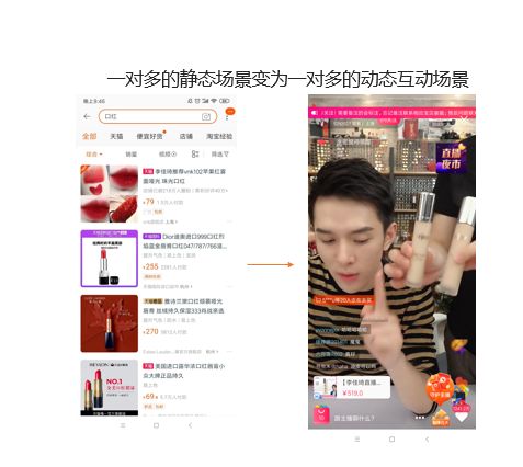 同时在直播的过程中,传统的人货场模式发生变化,传统的淘宝时代,是人找货的过程,用户在搜索中找到适合的产品,在这过程中,一切都变得不可控。而淘宝直播的模式,变为货找人的模式,实现人货更优,并且内容导购对话,让转化变得更加可控。想象一下,面对一个人在旁边不断地给你灌输,买它买它更容易转化呢,还是给你几张图让你自己去体会更容易转化呢?在直播的带动下,用户很容易产生下单行为。
