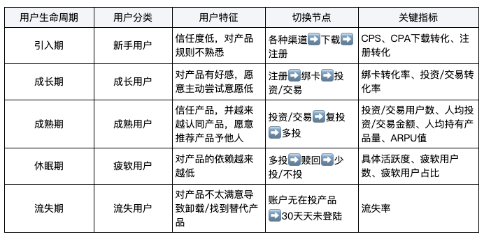 看到这儿,可能会有读者会提出这样的疑问:这图的意思是对处于不同时期的用户都有不同的运营指标,那你怎么知道这个用户是属于哪个时期?