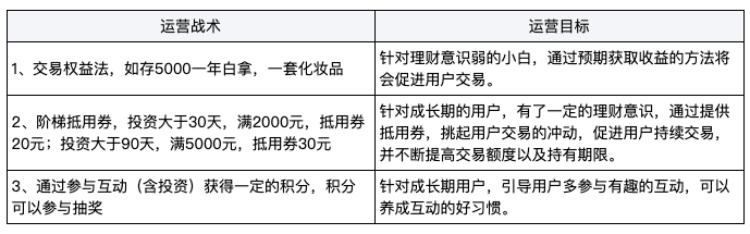 所以对于成长期的用户,我们的运营战术及运营目标可以用下表简单表示: