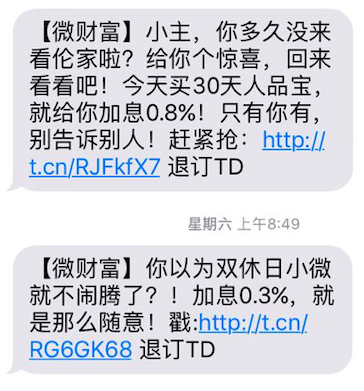 对于休眠期的用户,本来关系已经很脆弱了,无论什么原因导致走到了这一步,运营者很有必要直面用户关心的核心需求。例如可以尝试通过奖励刺激,诱导这部分用户回心转意。可以采用走心且突出核心需求的短信文案加以提醒: