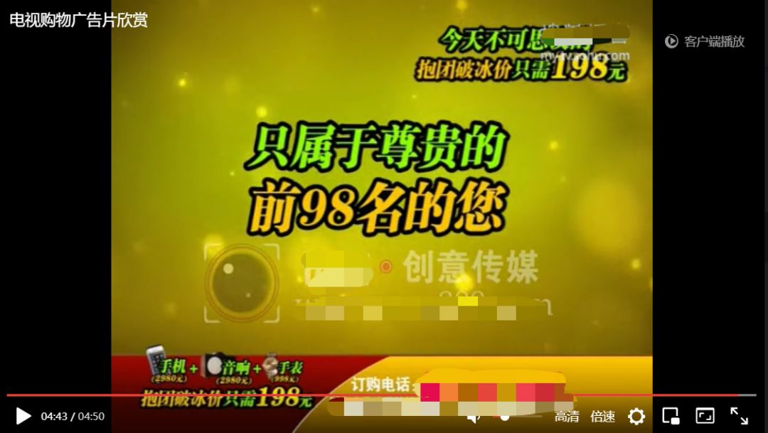 这些强力文案子弹头,再配上振奋的背景音乐,一步一步的让顾客认为这是个千载难逢的机会,直到拨打电话抢购……