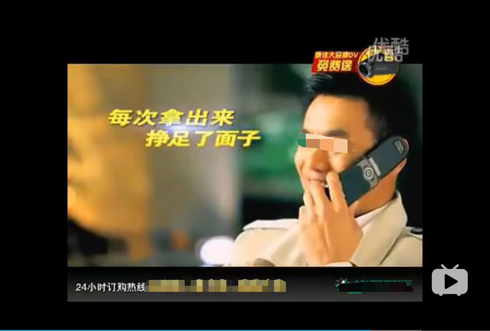 例如,2012 年的某款手机,除了用大量辞藻去描述手机本身的功能:“豪华名车造型、铂金版闪耀金边”之外,更是隆重上演了一场使用手机后的获得身份感的戏码。