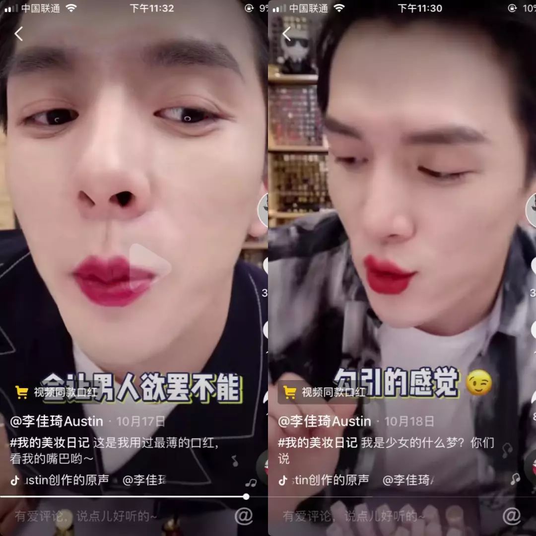 描述口红的时候,他带着丰富的表情惊叹:“好好看哦!”、“这个嘴巴就是女明星的嘴巴!”、“这是银河!”、“一咬起来,爆浆的感觉!”、“像开了美颜一样的质感”。