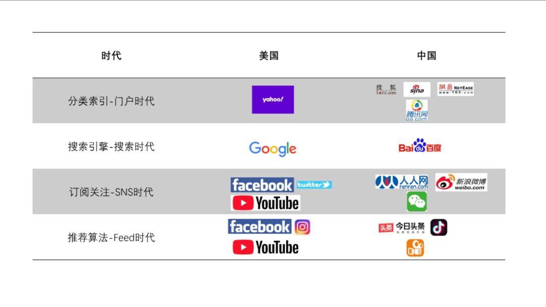 我们大概可以把互联网信息分发的模式按照其主导的信息分发的模式流行的时期大致划分成四个时代: