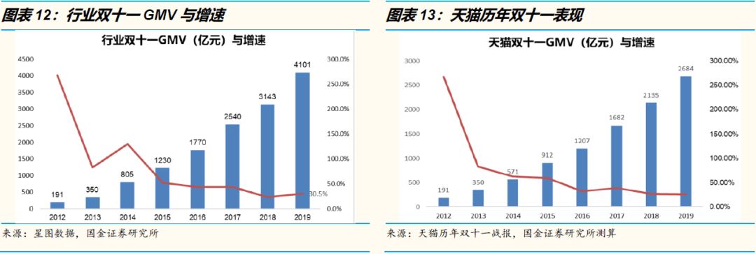 我们预计经济稳中回暖,消费将缓慢复苏,然而历年来电商催化下的过度透支消费行为也逐渐催生理性消费的兴起,2019年双十一全网交易额同比增速30.5%高于去年。