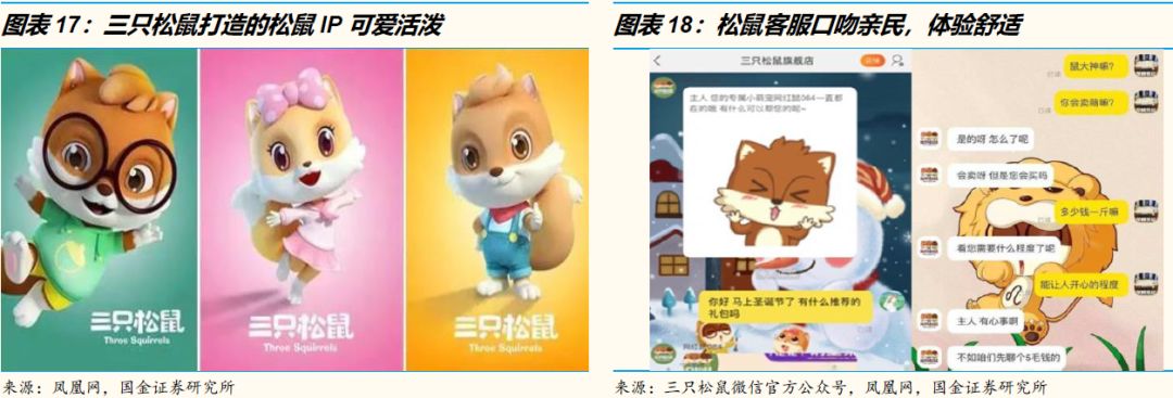 在初步建立IP后,三只松鼠通过在各个消费触点中设计创意内容,不断强化萌系品牌形象。公司打造的视觉营销体系,无论是线下产品包装还是线上店铺网页都具有较强的视觉冲击,保持萌系风格,品牌人设得以突出。