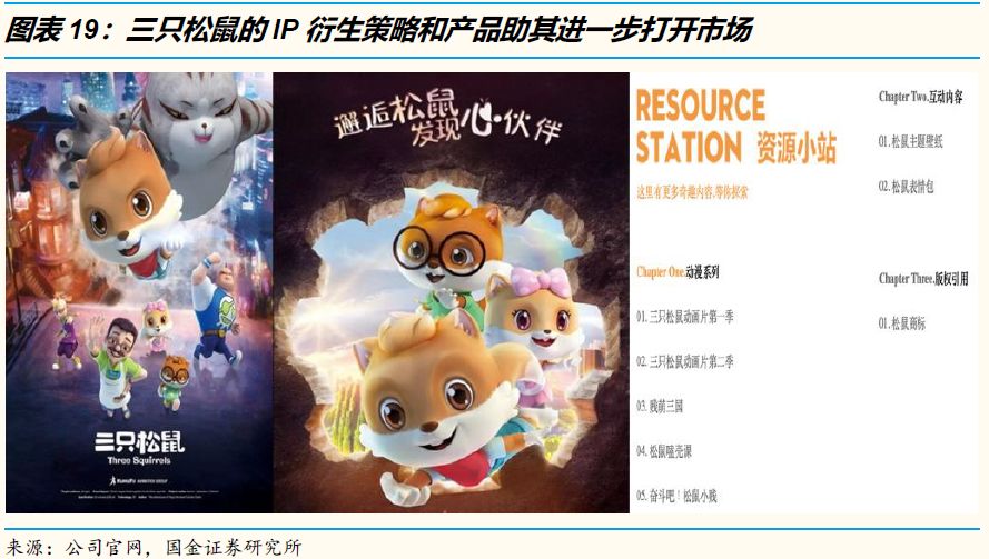 三只松鼠所提出的“泛娱乐化”战略核心观点是“打造内容垂直的IP,搭建立体式的产业经营平台”。原创动画作为泛娱乐化战略的关键,是撬动整个“松鼠王国”的支点,而后续需要建立产品线,持续生产IP衍生品,最终构建商业多场景渗透能力。此外,三只松鼠未来计划建立松鼠小镇,依托三只松鼠IP形象与城市人文相融合,以“产业+文化+旅游+商业”为定位,构建一个特色主题娱乐综合体。