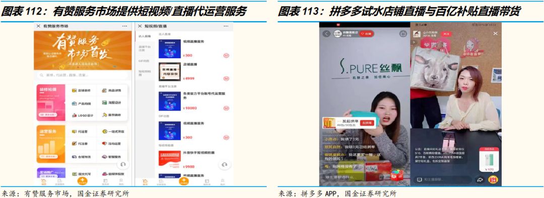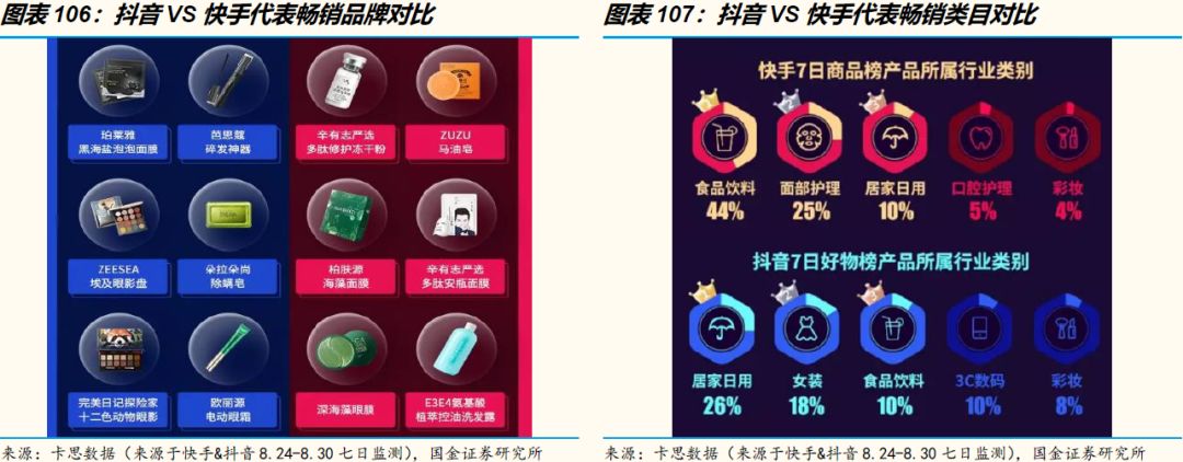 阿里的切割顺理成章,独享现成巨量流量的同时努力激励站外导流,原则上对于商家从体外导入的流量予以优待——在内部进行1:1的流量配比奖励,“流量黑洞”的本质在直播带货业态体现更加显著;头条、快手直播带货也已具备初步规模效应。特别是快手直播带货的效果在下沉市场大放异彩。