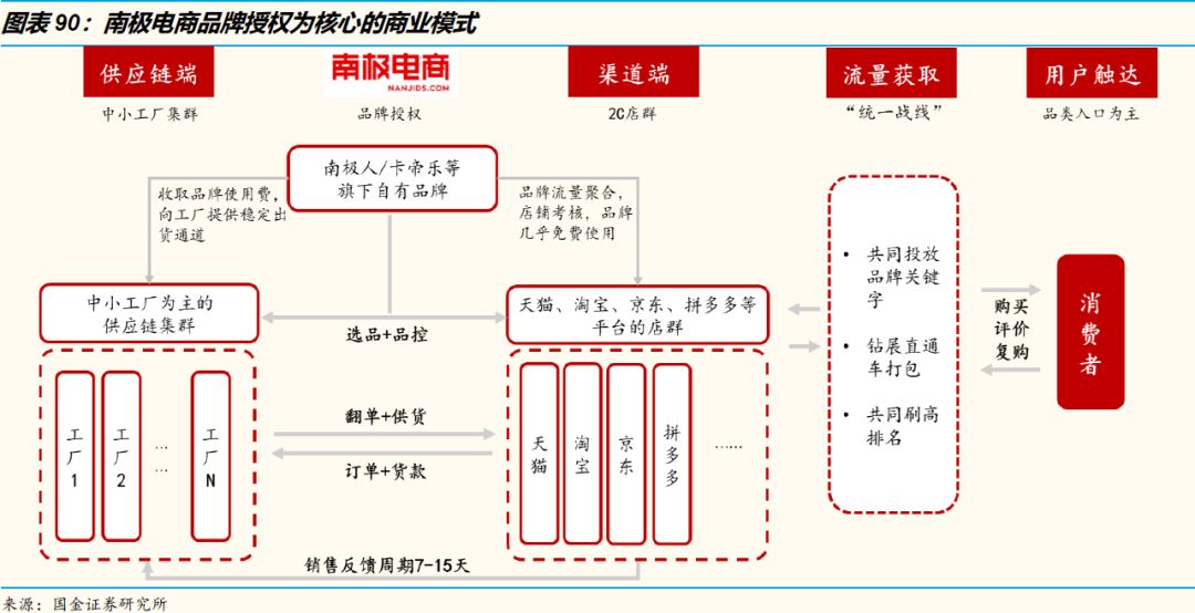在消费品牌端,我们看好各细分消费品类当中与双十一、618等大促形势更吻合的头部品牌个股,包括美的、海尔、九阳、新宝、珀莱雅、丸美、李宁、安踏、波司登、中顺洁柔等。同时,基于下沉市场渠道的放量,头部Saas服务商崭露头角,联合推动白牌崛起的逻辑下,南极电商作为国内A股稀缺标的值得关注。