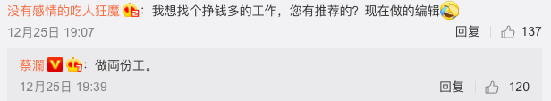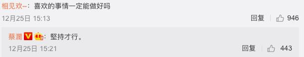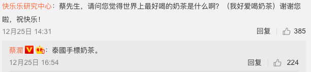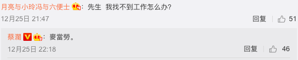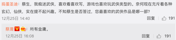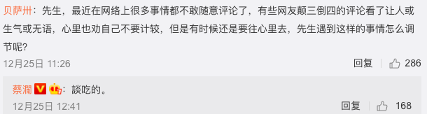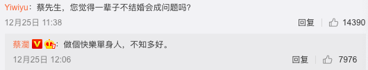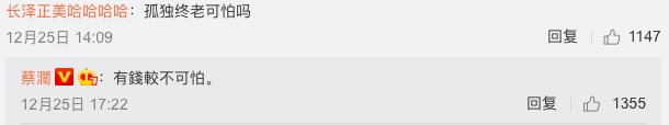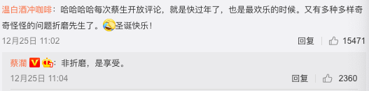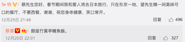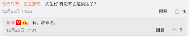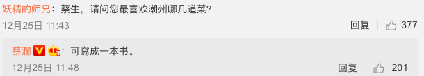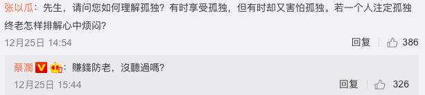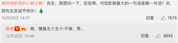 直到圣诞节这天,蔡澜先生再次开放了他的微博评论,在线回答网友们的各种问题。从蔡生的回复中,我渐渐摸到些“有趣而不失豁达”的文案该有的样子。