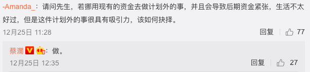 因此,当网友们面临着两难选择时,蔡生也多是劝他,去做吧!