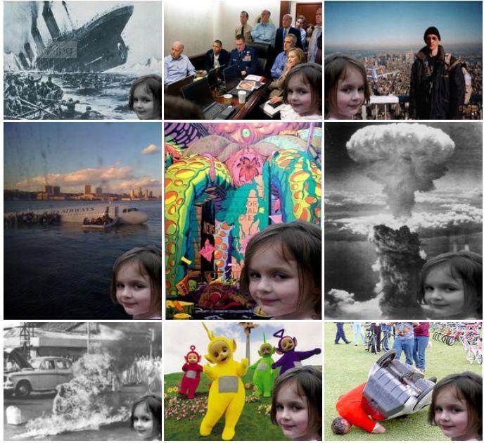BuzzFeed最先在网络上疯传的帖子叫做“灾难中的女孩(Disaster Girl)”。在一栋被大火烧毁的房屋前,一位小女孩露出诡异的笑容。另外编辑们把女孩的照片截下来并把她放在其它的犯罪现场,女孩诡异的笑容在不同场景里毫无违和感。在此事件里,BuzzFeed不仅仅是寻找最流行的话题,而且还参与制作热门话题。