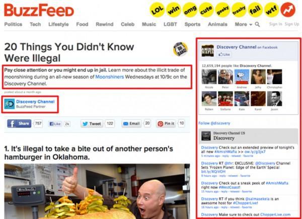 对于BuzzFeed,原生广告的诞生是线上广告的重大改革。在BuzzFeed的原生广告里,尽管已经被标注为品牌商,但依然很难分辨是原生广告还是普通文章。当我们读完整篇文章以后,才会渐渐发觉到这是条广告。令广告商兴奋的是,在广告竞争越来越贵和无效的广告展示越来越多之中出现一股清流。