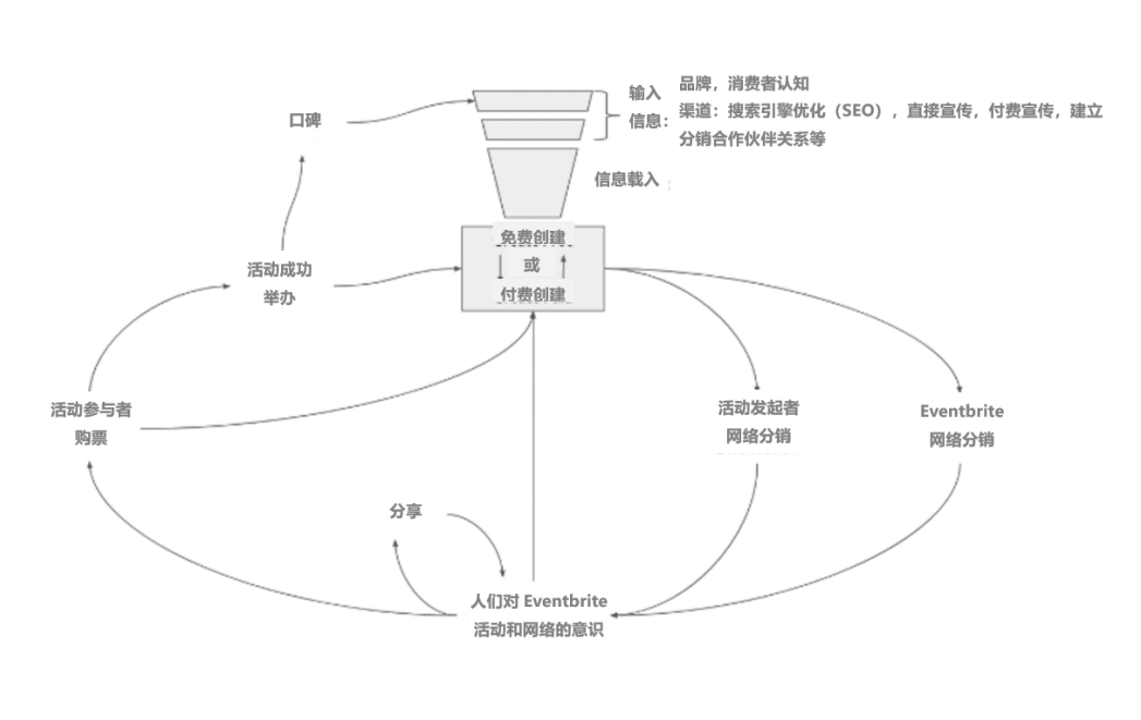 “我们的增长团队花了近两年时间试验,不断优化该增长循环。我们的付出也得到了回报:我们显著提高了从活动参与者到活动创建者的转化率,推动了业务的高速有机增长和提升。Eventbrite约70%的消费者认知,都是由病毒式传播的循环或口碑来驱动的。”