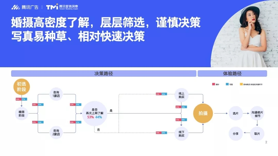 上面的例子,是如今摄影行业发展的一个缩影。近年来,随着经济环境的变化以及95后乃至00后们的崭露头角,摄影市场也在悄然之间发生着翻天覆地的变化。和之前相比,如今的摄影行业市场有着怎样的特点?触发婚摄写真消费者做出最终决策的临门一脚到底是什么?新生代的消费群体有着怎样的新面貌?新形势下的摄影行业又有着怎样的机遇和变化?在TMI腾讯营销洞察发布的《2019年摄影行业洞察白皮书》中,这些答案将一一揭晓。