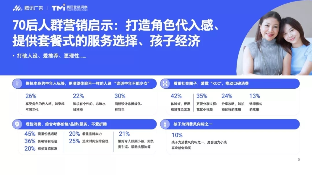 70后的数据却在某种程度上打破了固有的人设。除了偏重理性消费,注重品牌实力等常规要素,70后的社交属性不可忽略,有42%的消费者表示“如果体验好,更愿意推荐给亲友“,乐于分享是这类人群的特色之一。