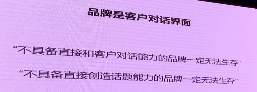 而英国剑桥大学尹一丁教授则表示“数字时代,品牌是瞬间感受,品牌已经进入了瞬间感受时代,品牌是客户对话的界面,不具备直接跟客户对话能力的品牌一定无法生存……”
