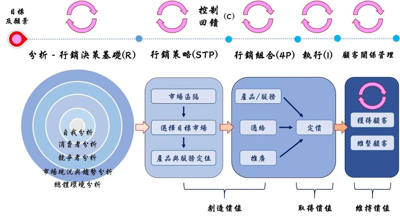 苗庆显老师的总结非常精辟:营销始于洞察,谋于STP,落于4P,行于实施,再循环于反馈。