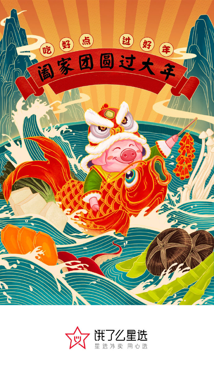 #年三十##除夕#有饿了么美食陪你共享团聚时光,这个猪年更有滋味!
