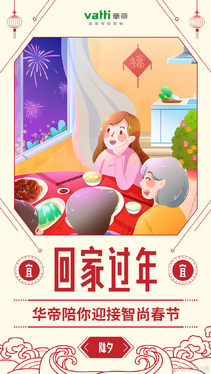 #除夕#万家灯火,恭贺新禧,在春节联欢晚会的BGM下,华帝明星厨电们团聚于此,各尽其职为你和家人烹饪美味,一同迎接新春时刻,今晚就请好好享受美好的智能科技为你带来的团圆新体验吧