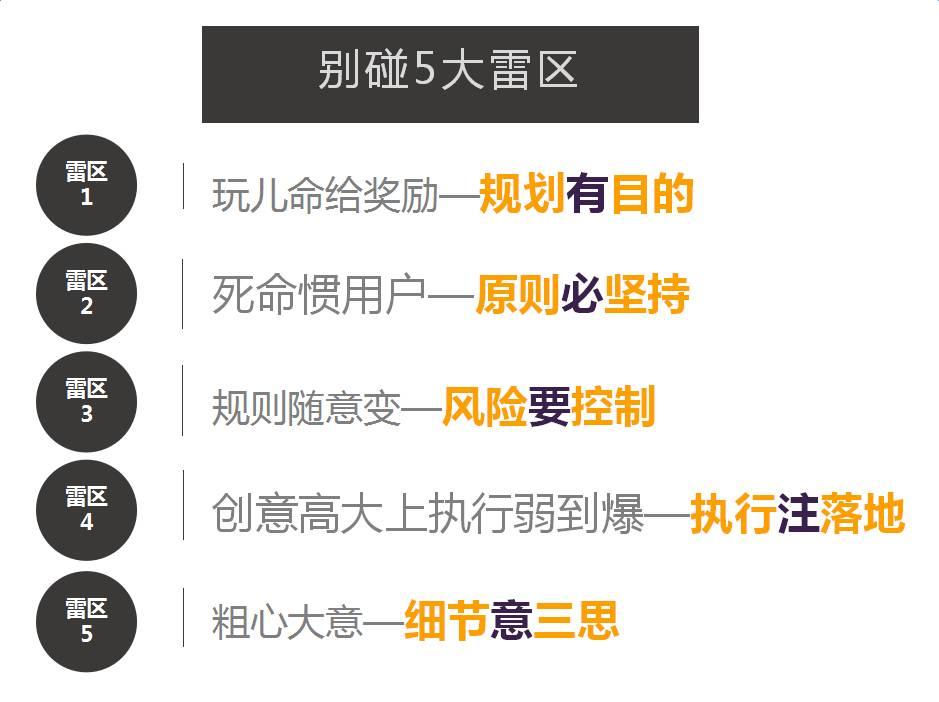 (5)做运营真的不能粗心大意。运营是最直接对接用户的,你的任何一个执行点做错都直接影响到用户。所以这几个雷区大家一定要避免。