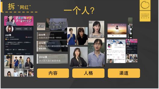 我觉得最核心的是我们刚刚拆解出来的内容、人格、渠道。从用户视角看,我们是通过内容去了解一个网红。但想要成为网红,核心是在自己的人格里去寻找人无我有的优势点,把这个优势点单拎出来,确定你的身份和单一要素之后,把这些优势放在有需求的地方,最终在这样一个前提下根据渠道特征和用户建立连接。