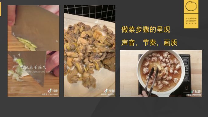 其实美食类视频,用户的第一需求很简单,就是清晰看到做菜的步骤。同样是做鸡肉料理,在做菜步骤,这个用户最直观的需求上,这三个人讲解如何做菜时,其实相差不远。甚至如果我不介绍这三个人,其实大部分人也猜不出这三个视频分别属于谁。