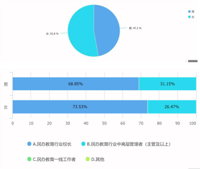 高层管理者,和校长占了近七成。