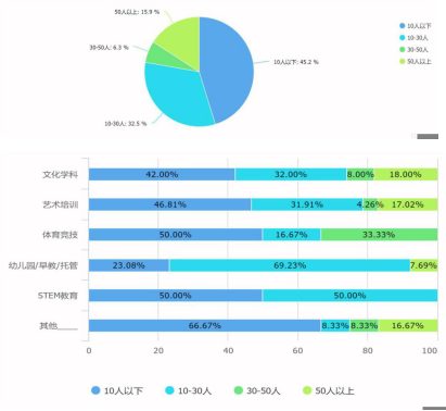 分析:从机构类型,反映出现在传统的民办教育还是以文化学科与艺术培训为主,不过随着