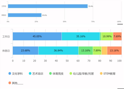 有效填写 125 人,其中文化学科 49 人,占比 38.9%,艺术培训 45 人,占比 35.7%,这两类占比就达 74.6%。幼儿园/早教/托管,占比 9.5%。