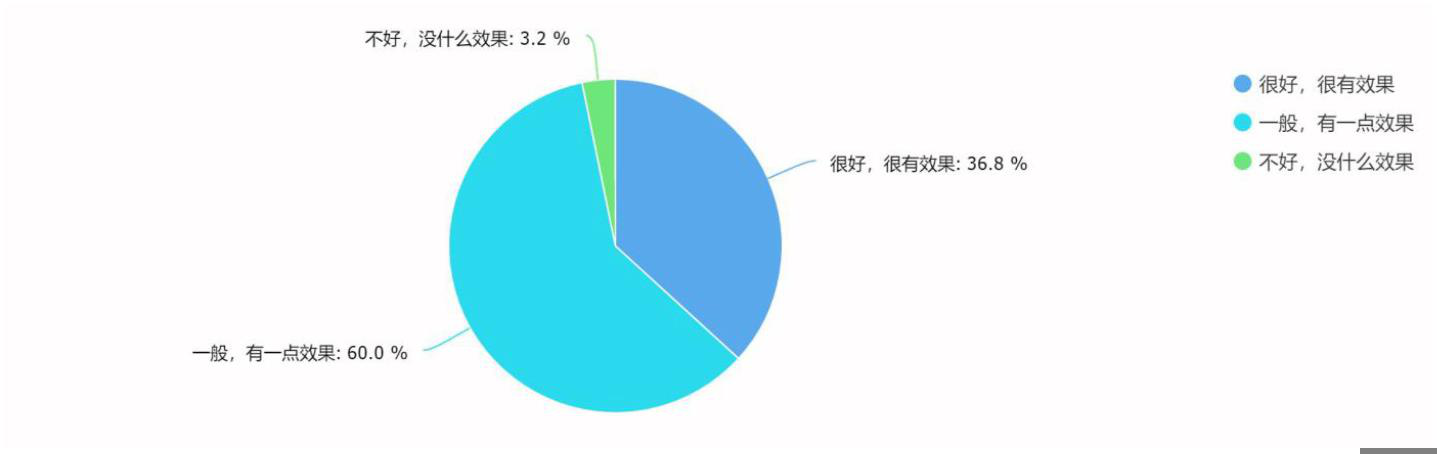 有效填写 125 人,其中 75 人觉得有一点效果,占比 60%,46 人觉得很好,很有效果,占比 36.8%,仅有 4 人觉得,没效果,占 3.2%。