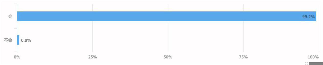 有效填写 126 人,仅有 1 人不会分享,其余 99.2%,125 位用户,都会乐于分享,把优质的课程、资料分享给朋友和同事一起学习。