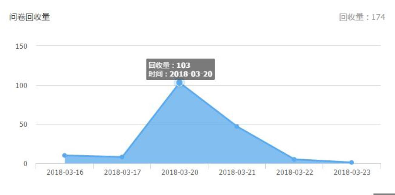 回收量在推动推出当日 21 点-24 点,3 个小时峰值最高,回收 103 份,21 日回收 47 分。符合活动生命周期。逐渐下降,在 22 日晚上 21 点,停止回收问卷。